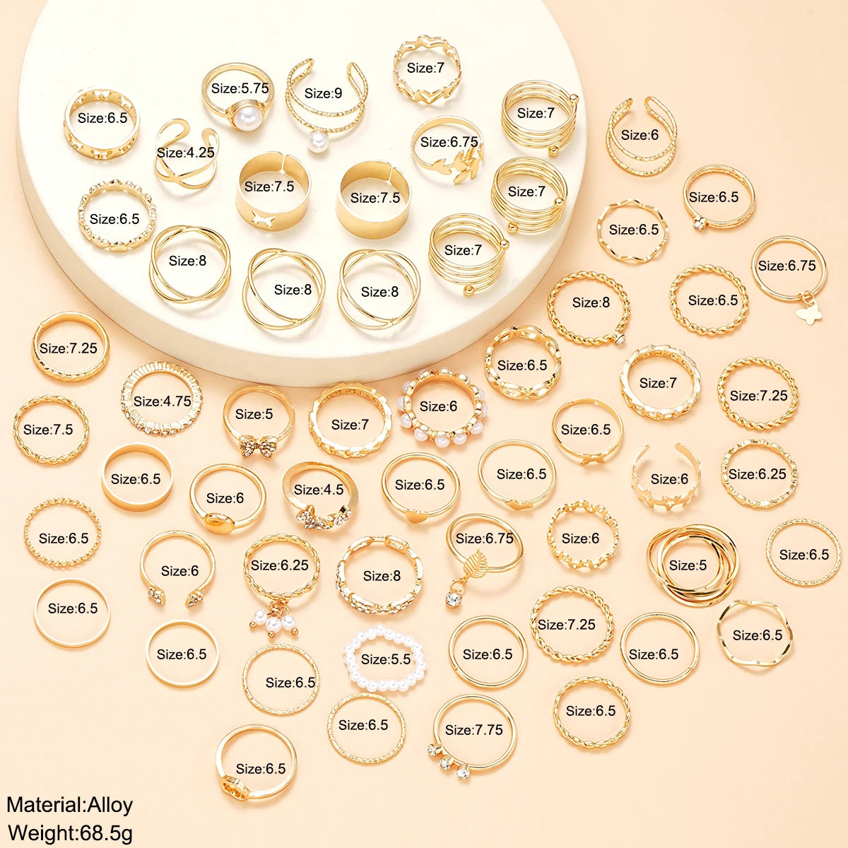 58PCS Vintage Heart Snake Butterfly Rings Set for Women Fashion Metal Gold Plated Geometric Hollow Finger Ring Jewelry Gifts New